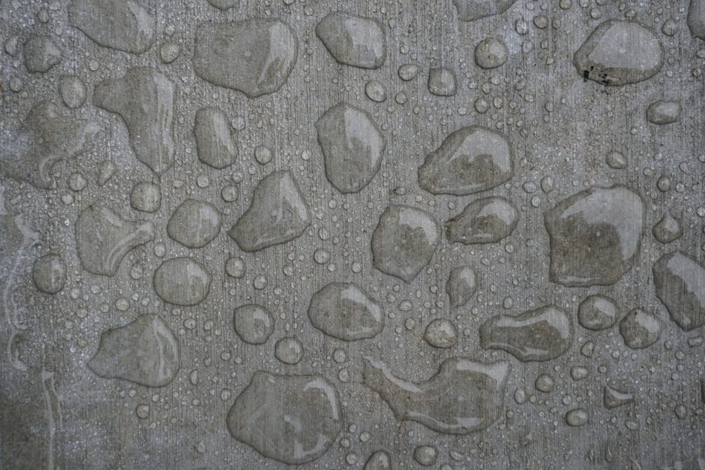 Các giọt nước mưa bị đẩy lùi trên bề mặt xi măng mới