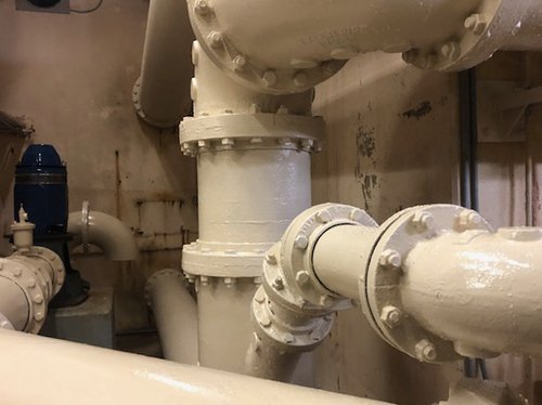 Đôi khi, một dự án bắt đầu nhỏ, nhưng khi bắt đầu tiến triển, nó trở thành một công việc lớn hơn nhiều. Đây là trường hợp tại West Reservoir ở Glenview, Illinois. Nhóm dự án biết rằng có vấn đề về nấm mốc trên một số lớp cách nhiệt bằng bọt ống cần được sửa chữa. Thật không may, vấn đề nấm mốc đến mức không thể cứu được lớp cách nhiệt và tệ hơn nữa, lớp cách nhiệt bằng khuôn đã che giấu các đường ống bị ăn mòn được phủ bằng lớp phủ ở tình trạng cực kỳ kém. Ở một số khu vực, lớp phủ bị nứt và ở những khu vực khác, rỉ sét và nấm mốc đã lộ ra qua những mảng sơn đã bong ra hoàn toàn.