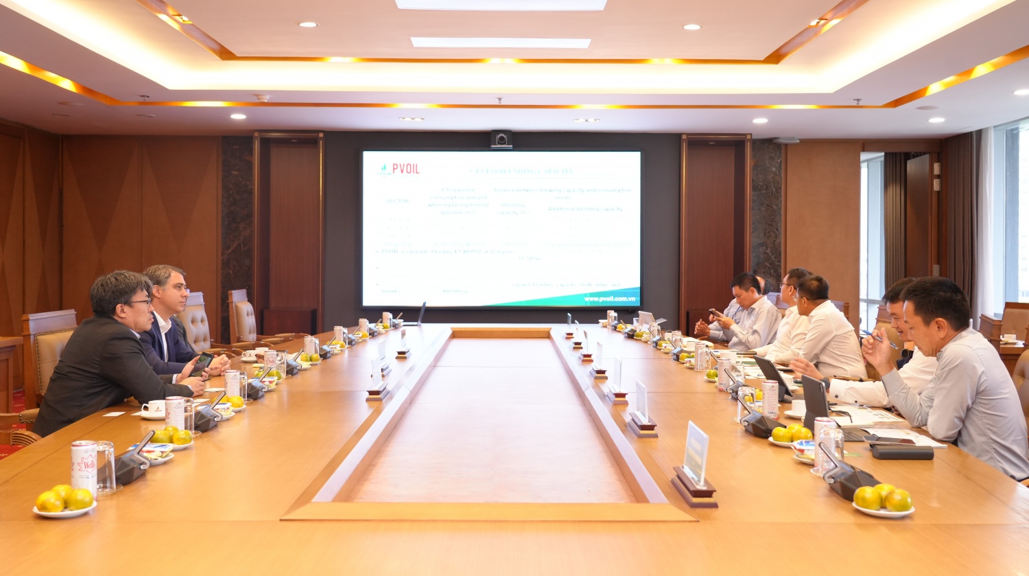 Trao đổi tại buổi làm việc, Phó Giám đốc Petrovietnam Lê Xuân Huyên đã giới thiệu với lãnh đạo FS về tổng quan tình hình hoạt động của Petrovietnam, các lĩnh vực chính của các đơn vị thành viên trong sản xuất nhiên liệu sinh học, xăng E5, E10,... cũng như chia sẻ một số định hướng phát triển của Tập đoàn trong tương lai.